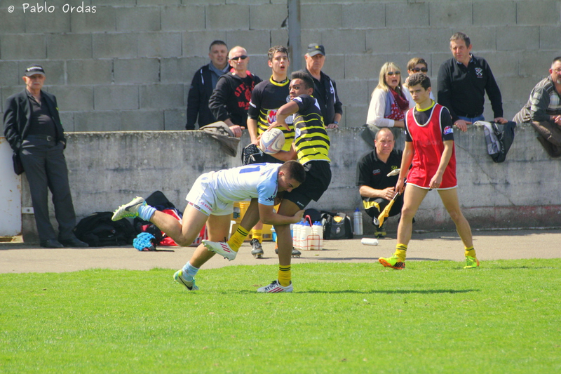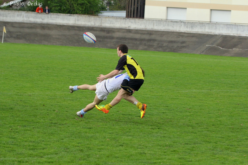 Une domination des Montois en première mi-temps avec peu de ballon pour les Bayonnais, mais grâce à un essai en contre d’Hugo Barada, les Bayonnais virent devant à la mi-temps 10 à 06. La deuxième mi-temps fut à l’avantage des Bayonnais avec du beau jeu de leur part et 4 essais pour un score final de 34 à 06.